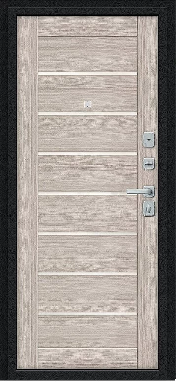 Надежная входная Дверь Браво Техно/BChrome Букле черное/Cappuccino Melinga премиум класса по цене 34 435 руб. Большая толщина стали защитит от проникновения в ваш дом, квартиру или коттедж. Используется очень качественная фурнитура: замки, цилиндры, ручки, защелки. Покрытие и отделка двери изготовлено под внимательным контролем производителя. Дверь имеет долгий срок службы и гарантию.